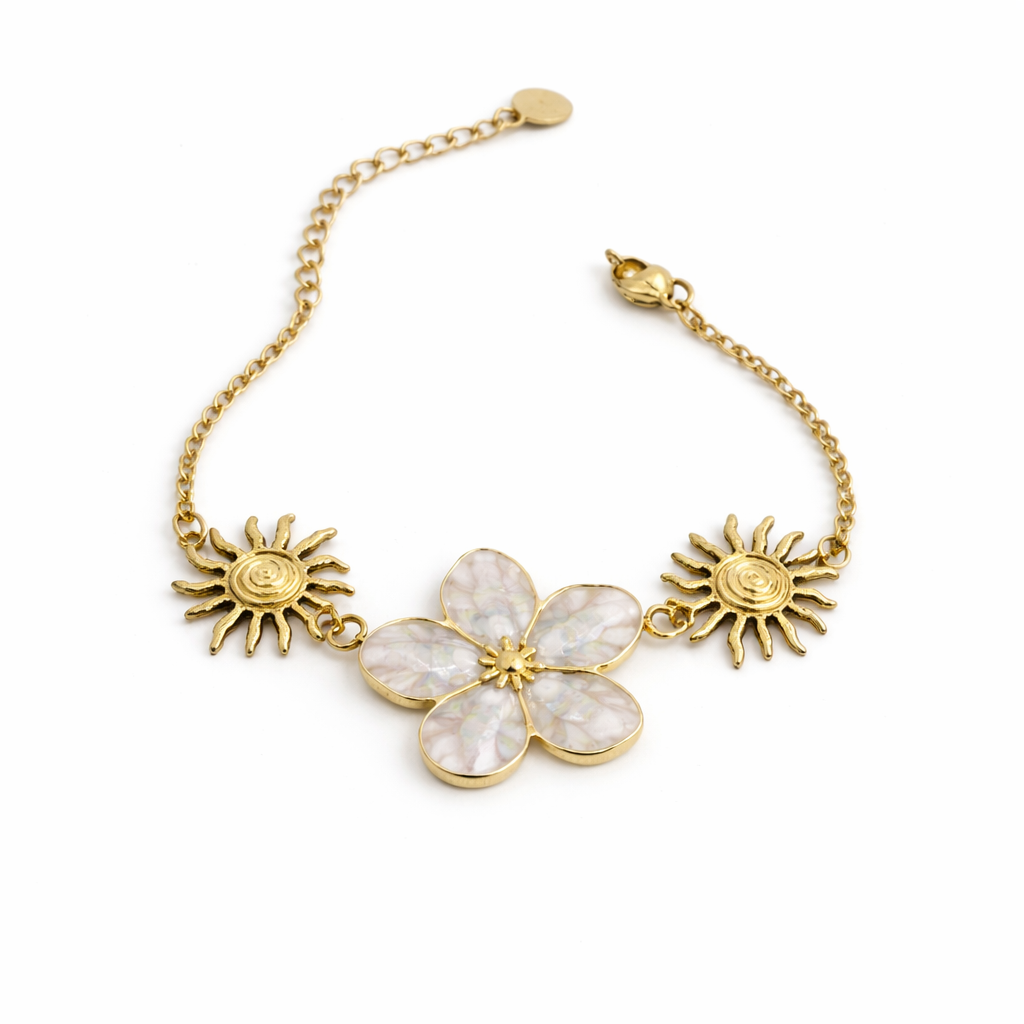 Descubre la colección Flor de Manila, una propuesta inspirada en la naturaleza y en la belleza de los detalles. Cada pieza destaca por su diseño floral, con acabados dorados y delicados toques nacarados que aportan luz y elegancia.