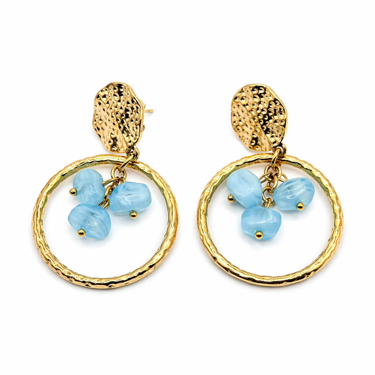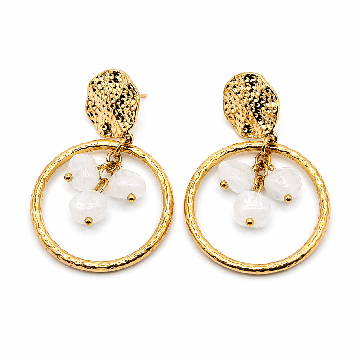 Pendientes dorados con piedras naturales.