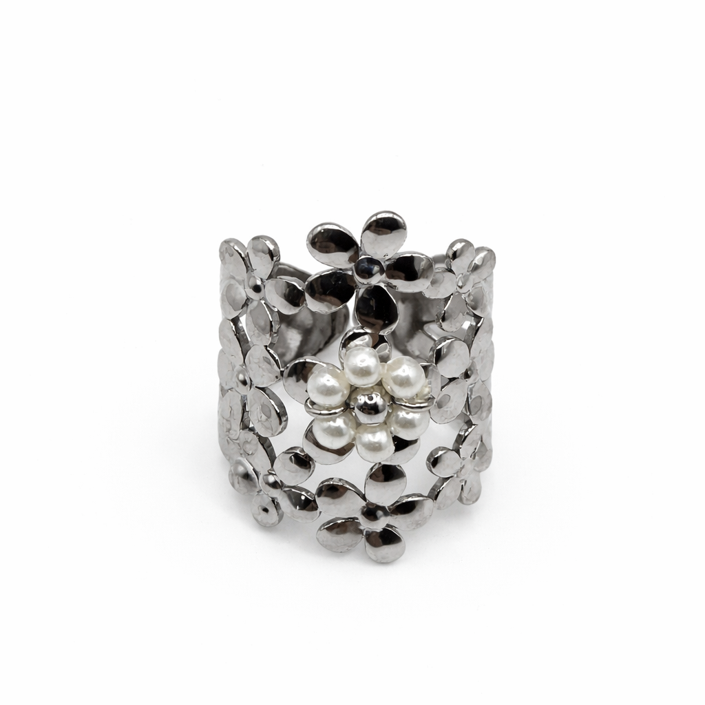 Descubre la elegancia atemporal del anillo Jardín de Perla en acabado plateado de estilo natural.
