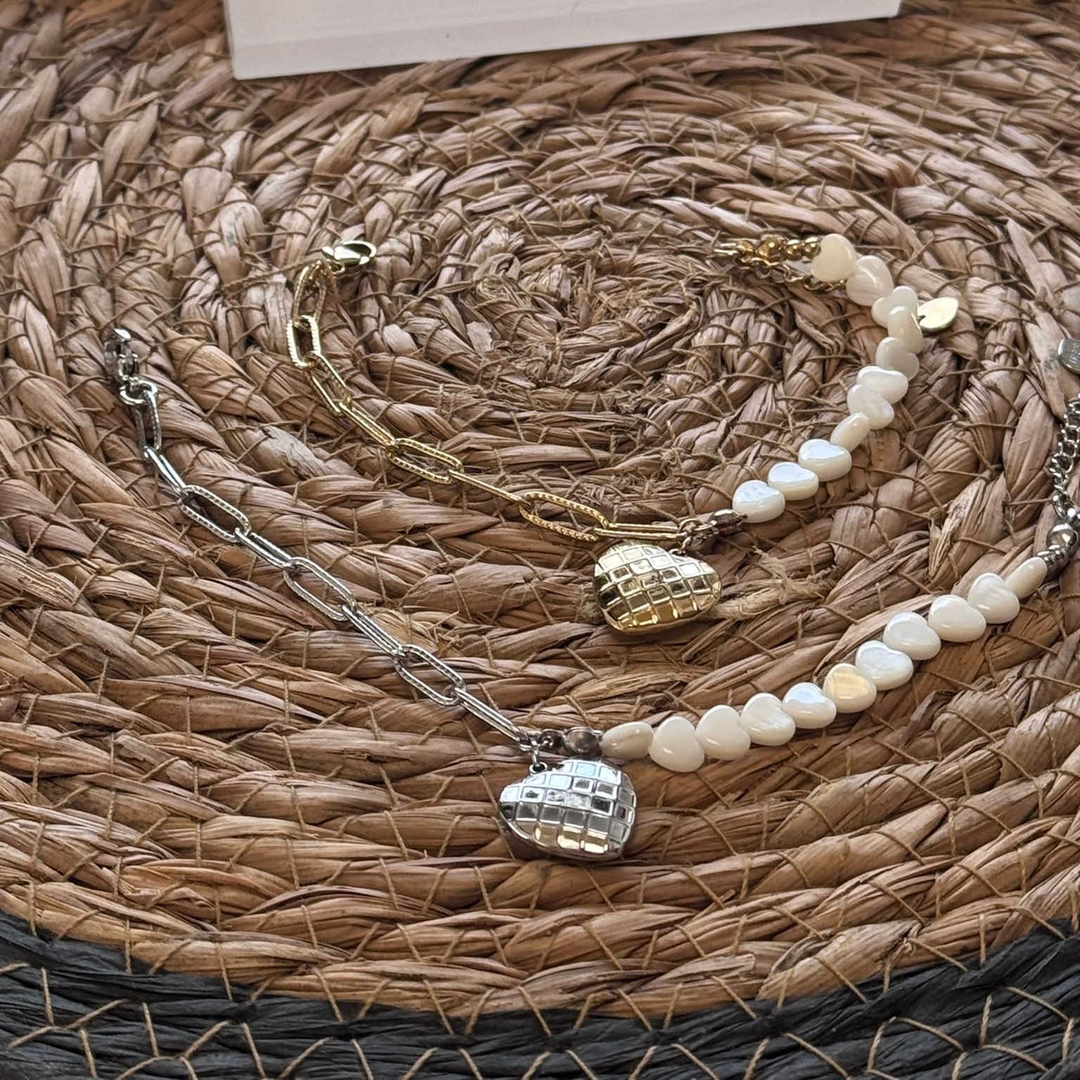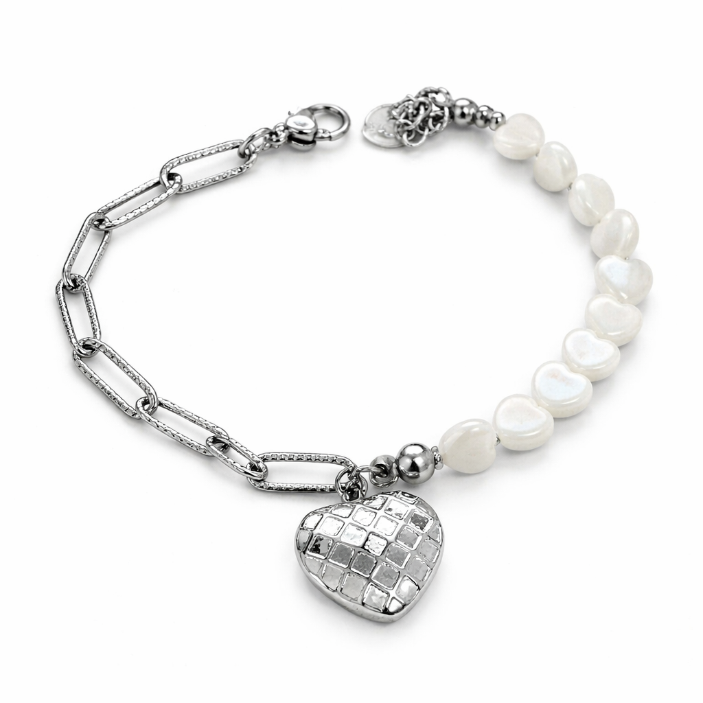 Su diseño mezcla perlas de acabado natural con detalles en acero inoxidable. El resultado es un equilibrio perfecto entre lo clásico y lo moderno.